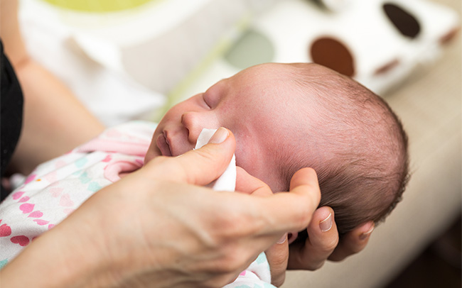 अगर आपके शिशु को संक्रमण नहीं हुआ है, तो आपके शिशु की आंखों की किसी विशेष सफाई की आवश्यकता नहीं है। हालांकि, आंखों में चिपचिपाहट, लालिमा या डिस्चार्ज जैसे किसी भी लक्षण पर ध्यान दें। ये बिना किसी प्रत्यक्ष कारण के हो सकते हैं लेकिन यह एक या दोनों आंखों में पीले रंग के रिसाव के रूप में दिखाई दे सकते हैं। यदि ऐसा होता है, तो कृपया अपनी दाई या स्वास्थ्य विज़िटर को सूचित करें, जो हो सकता है आंख (आंखों) से एक स्वैब लेकर और/या आपके चिकित्सक द्वारा उपचार निर्धारित करने की व्यवस्था कर सकता है।