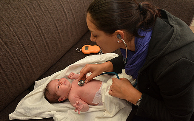एक बार आपके बच्चे के जन्म के बाद, आपका स्वास्थ्य विज़िटर आपसे संपर्क करेगा। पहली जांच (नई शिशु समीक्षा) आमतौर पर जन्म के 10 से 14 दिन बाद होती है। स्वास्थ्य विज़िटर माता-पिता और बच्चे के स्वास्थ्य और कुशलता की जाँच करेगा, फ़ीडिंग में सहायता प्रदान करेगा और सुरक्षित बने रहने के लिए महत्वपूर्ण सलाह देगा। वे बच्चे के साथ आरंभिक संबंध जोडने पर भी चर्चा करेंगे, दूध पिलाने के बारे में बात करेंगे, जाँच करेंगे कि बच्चे का वजन उचित रूप से बढ़ रहा है, टीकाकरण कार्यक्रम की व्याख्या करेगा और कार की सीटों जैसे महत्वपूर्ण सुरक्षा उपायों के बारे में बात करेगा। इस काल में, माता-पिता अक्सर एक दिनचर्या स्थापित करने के साथ-साथ नींद, रोने और पेट के दर्द के बारे में जानकारी प्राप्त करने के लिए सलाह लेते हैं।