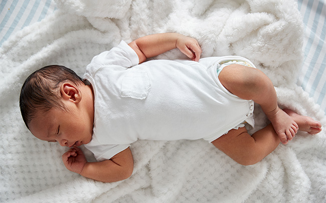 New born baby in vest worn over nappy ❏ 1 x pack of nappies ❏ Clothes; sleepsuits and vests (3-4 of each) ❏ Several cotton hats and a woolly hat ❏ Clothes for going home ❏ Socks/mittens (x2 pairs) ❏ Cotton wool/water wipes ❏ Muslin square/bibs ❏ Car seat to take baby home – learn how to use beforehand! ❏ Baby blanket/shawl   If you are planning to formula feed your baby; check with your midwife what you need to take to the maternity unit.
