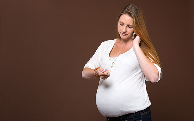 Heavily pregnant woman making a mobile phone call जिस प्रसूति यूनिट पर आप बुक है, उस पर कॉल करें यदि आपके: