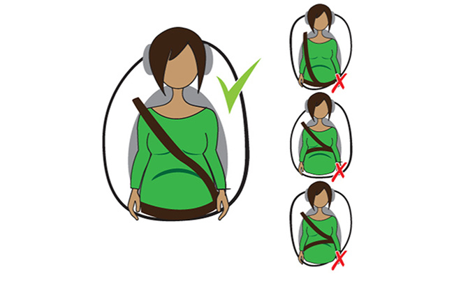 लंबी कार यात्रा में ब्रेक के लिए नियमित रूप से रुकना और अपने पैरों को खिंचना जरुरी है। अपनी सीटबेल्ट को अपने स्तनों के बीच क्रॉस स्ट्रैप के साथ और लेप-स्ट्रैप को अपने पेल्विस के आगे को बम्प के नीचे पहने बंप के आर-पार नहीं, बल्कि अपने पेट के ऊपर पहनें। गर्भवती महिलाओं में सड़क दुर्घटनाएं चोट लगने के सबसे आम कारणों में से हैं। अकेले लंबी यात्रा करने से बचें और जब भी संभव हो दूसरों के साथ ड्राइविंग साझा करें।